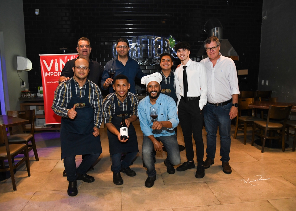 Pepito reuniu os colaboradores do Crafter´s para uma foto como agradecimento pela acolhida na noite preparada pela Vino Importadora para apreciadores desses excelentes vinhos espanhois.