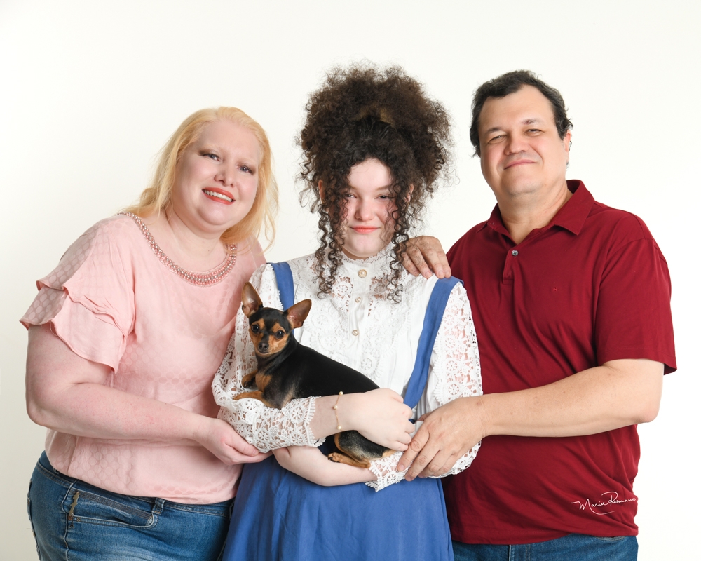 Mona Kamilly Abrahão Sallum está sempre na companhia dos pais Alessandra e Noé e da pet Nyx