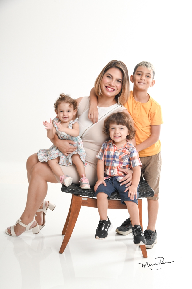 Caroline Machado Freitas Alves e seus filhos Davi Freitas de Camargo, Samuel Freitas Alves e Sara Freitas Alves