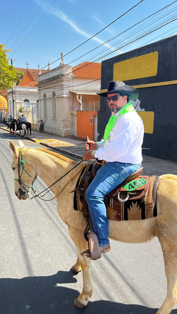 O empresário da Top Envase Arlisson Abreu é um dos organizadores da Cavalgada em homenagem a Nossa Senhora da Abadia, que passou na porta do Asilo Santo Antônio.