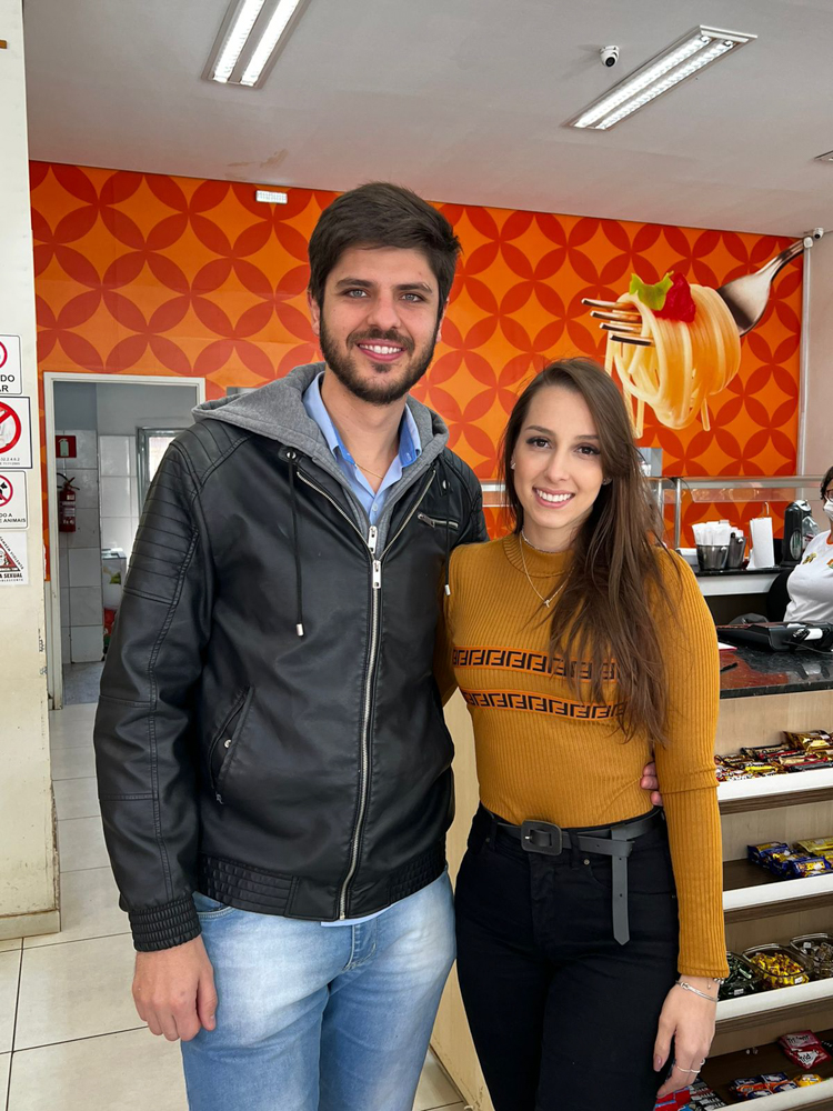 Caio Romano e Thaynná Galoro foram almoçar no self service da Cascata Sorveteria e ficaram apaixonados…