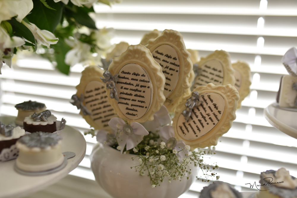 Doces personalizados enfeitaram a linda mesa da comemoração do batizado de Otávio Rocha Idaló no dia 10 de outubro