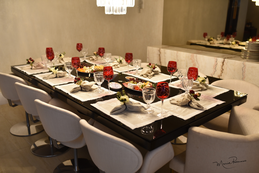 Linda e elegante mesa de almoço foi montada para a comemoração do batizado de Otávio Rocha Idaló