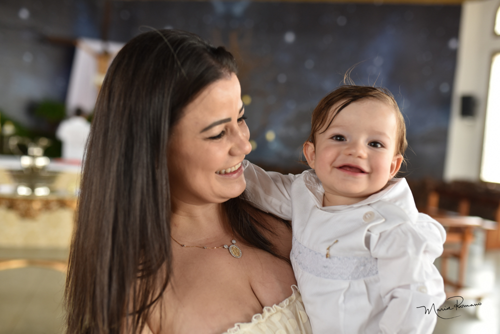Otávio Rocha Idaló, já abençoado com o sacramento do batismo, dava gargalhadas no colo da mamãe coruja Dra. Dayana Rocha Idaló