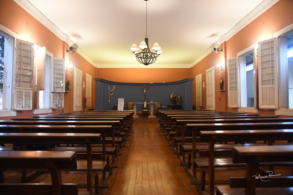 A capela do Asilo Santo Antônio recebeu nova iluminação e novas cores. O projeto foi da decoradora Glendha Luz.