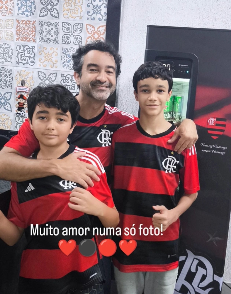 Rodrigo Oliveira e seus filhos Vitor e Felipe curtiram demais a final da Copa do Brasil, onde o Flamengo foi campeão.