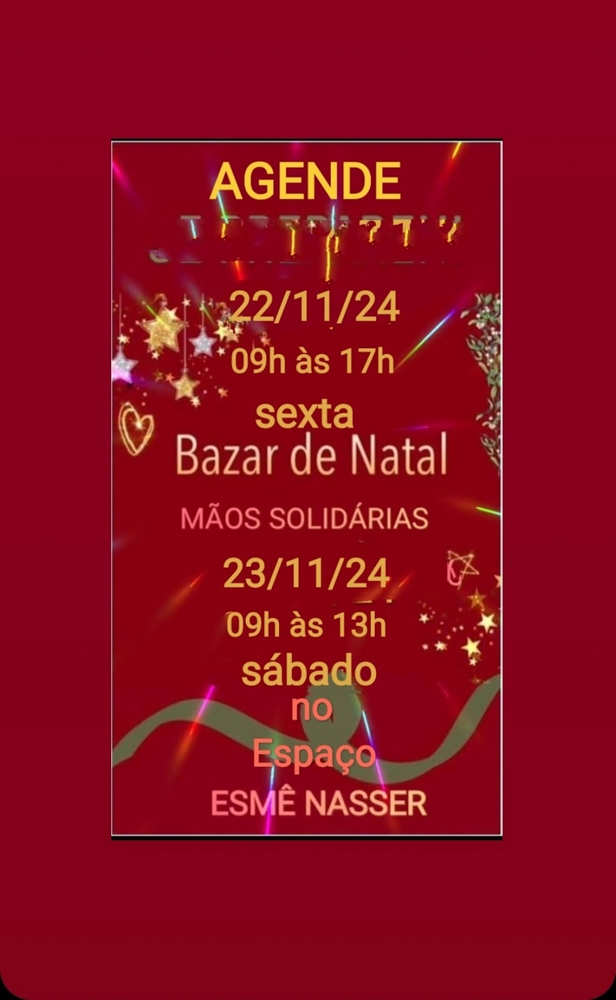 O bazar acontecerá no espaço Esme Nasser Store Home, dia 22 de novembro, sexta-feira, das 9 às 17 horas e dia 23, sábado, das 9 h às 13 horas.