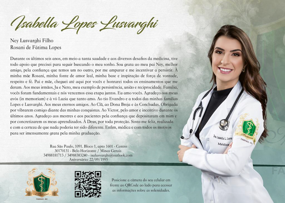 Parabéns pela formatura, linda Dra. Isabella Lusvarghi!