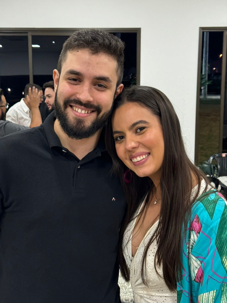 Ana Laura Vieira Ferreira e seu namorado Vinícius foram abraçar Caio Romano em seu aniversário de 31 anos.