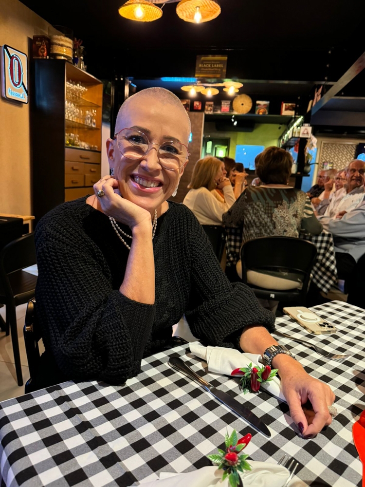 Andréa Nunes Ferreira mostrou todo o seu charme e a força do seu estilo forte de ser ao raspar a cabeça, pelo tratamento que está fazendo.