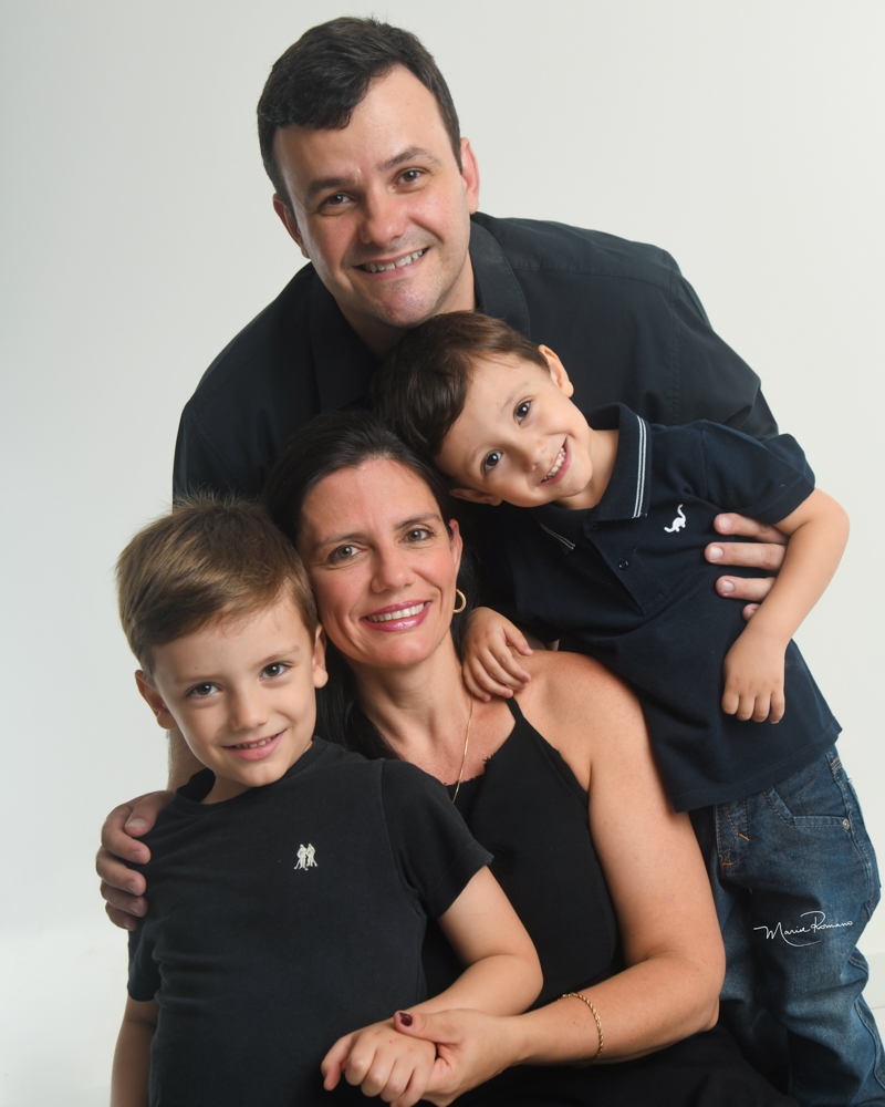 Sempre unidos e felizes, Marina Freitas Cunha e Thiago Souza Dias de Abreu com seus filhos Matheus e Milena.