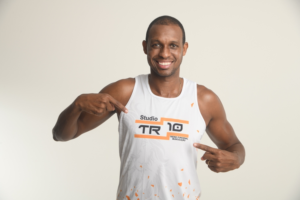 Weberton Lucas Evangelista exibe orgulhoso sua logomarca do Studio TR10, onde a saúde está em primeiro lugar.