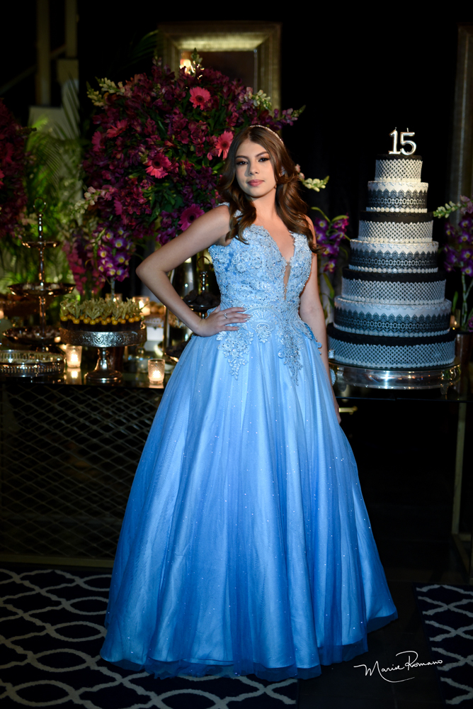 Georgia de Ávila Carvalho estava uma verdadeira princesa de castelo em sua festa de debutante