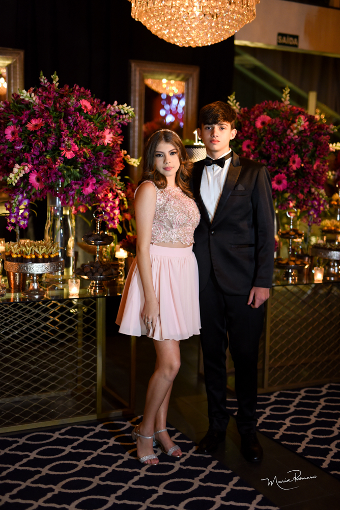 Geórgia de Ávila Carvalho e seu príncipe João Gilberto curtiram a festa de 15 anos que movimentou o Le Castelly no dia 13 de agosto