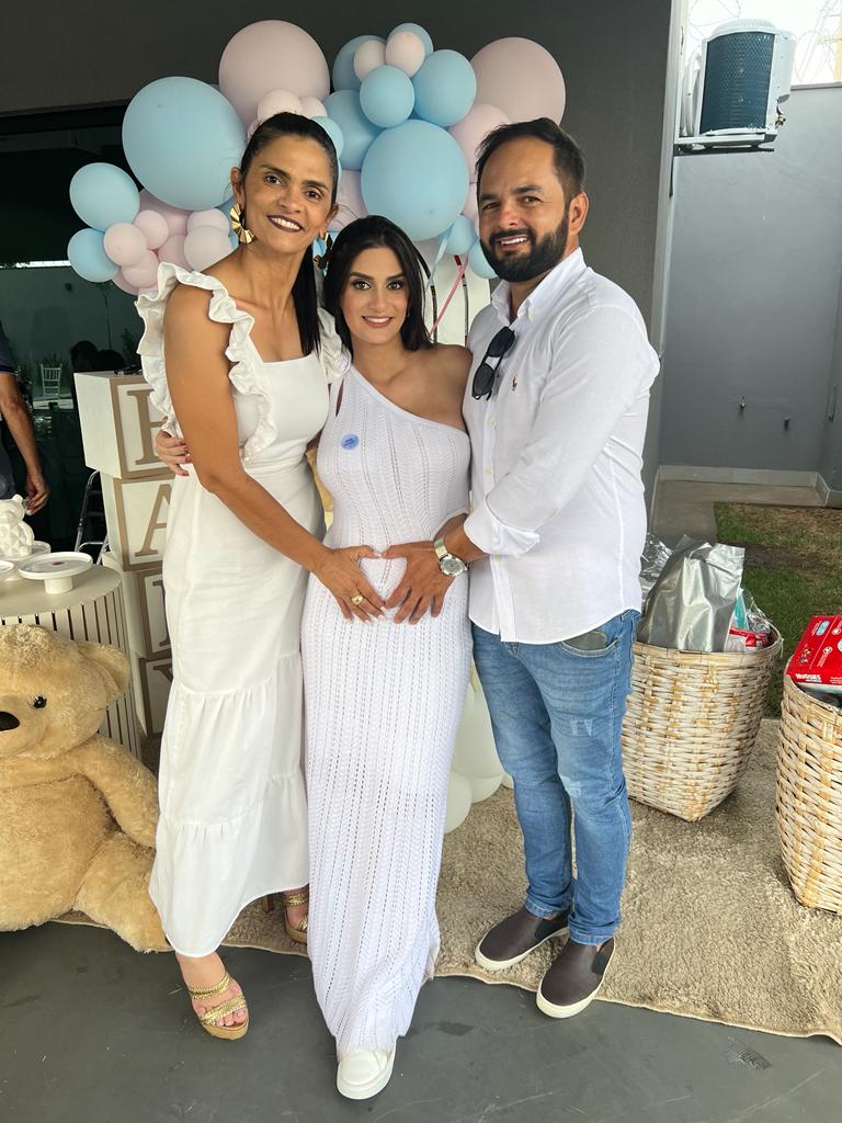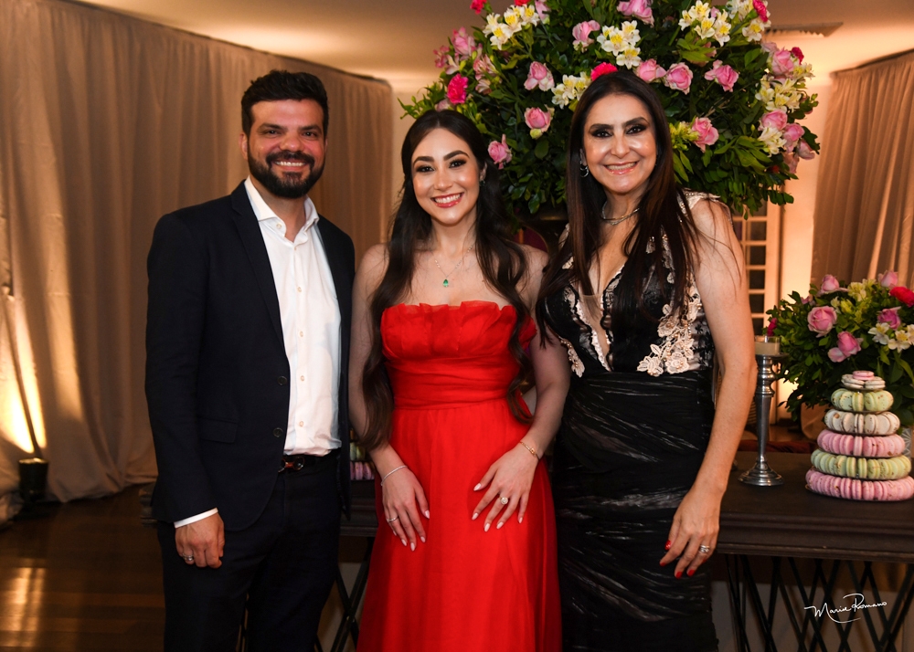 Victória Saad, ladeada pela madrinha Karime Saad e o esposo dela Junior Venutto, fizeram muitas fotos bacanas.