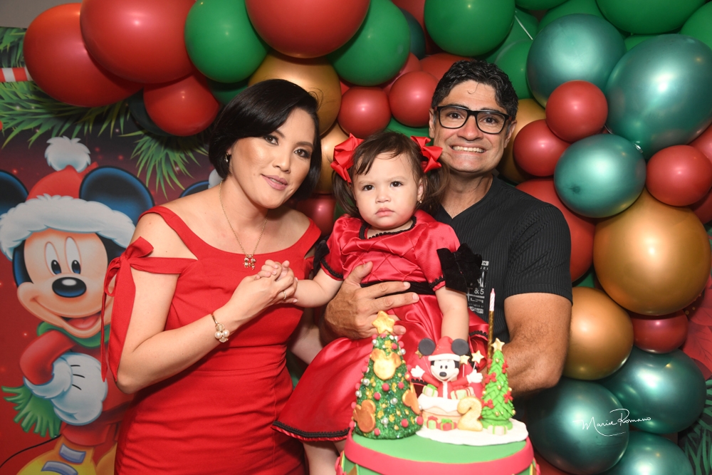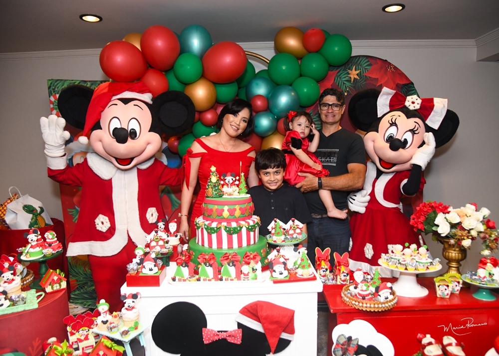Juliana Morinaka e Daniel Prata fizeram a festa de 2 aninhos com o tema Natal da Disney para a filha Isabela Morinaka Prata.