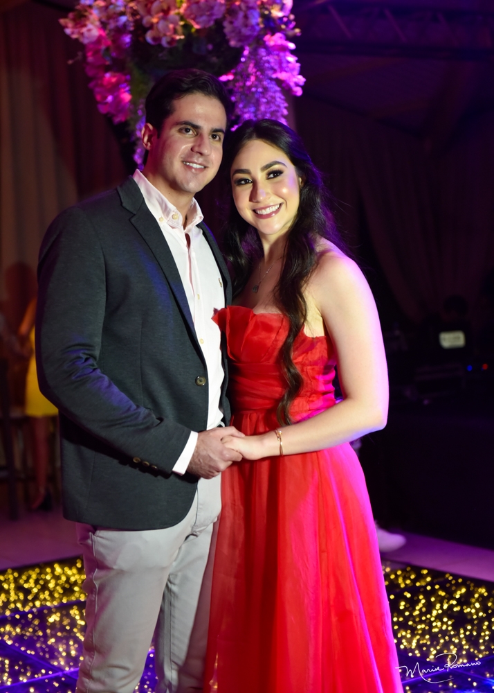 Victória Lemos de Almeida Saad e seu namorado Carlos Tovo estavam radiantes na festa de formatura dela.