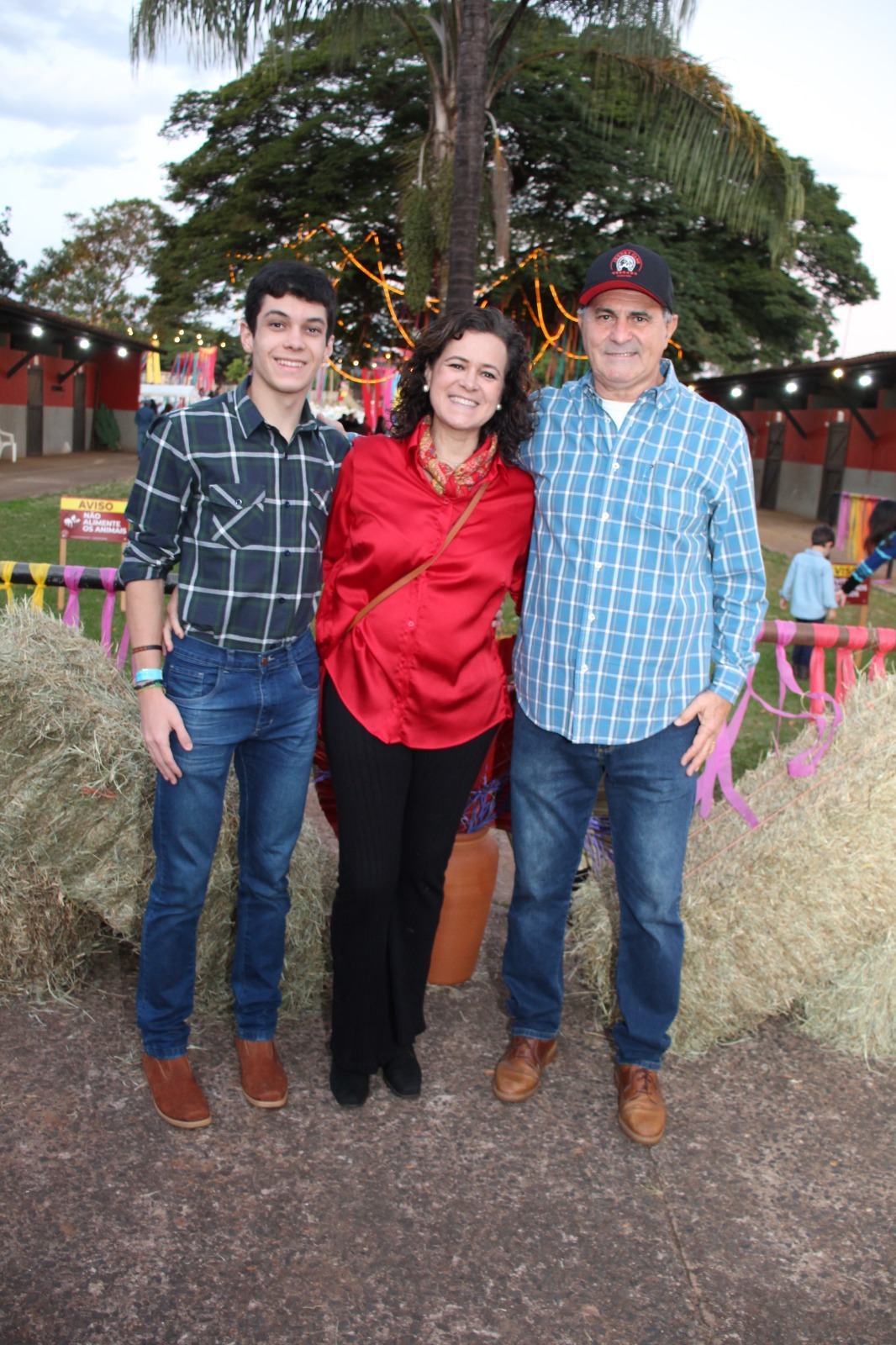 Inácio Andrade e seus pais Cláudia Cartafina e Evandro Andrade aproveitaram a festa junina do Jockey Club para rever os amigos no último sábado