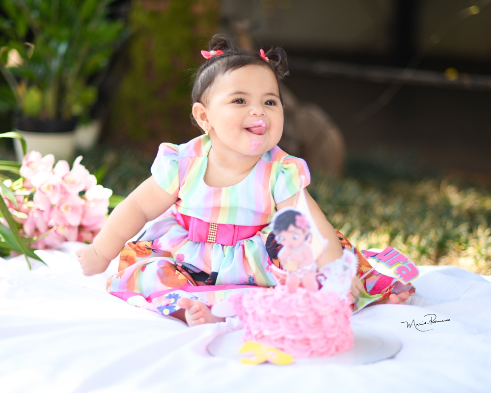 Laura Reis Rocha Nogueira fez 1 ano no dia 12 de julho e sua produção Smash the Cake ficou muito fofinha