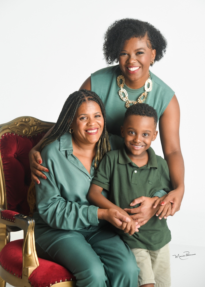 Maria de Lourdes Costa Fernandes com os filhos Felipe e Frederico Fernandes estão na exposição fotográfica da ACIU em homenagem ao mês das mâes.