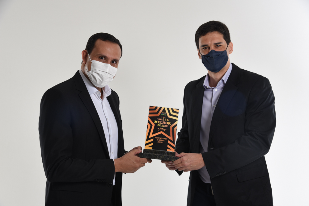 Tiago Souto está feliz por sua empresa, a Libero Seguros, ter sido escolhida como a melhor corretora de seguros da cidade. O prêmio Melhores de Uberaba é seu. Parabéns!