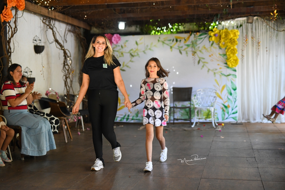 Marília Manzi e sua amada Manuela desfilaram para a Mundo Coloreh, uma marca de roupas femininas infantis