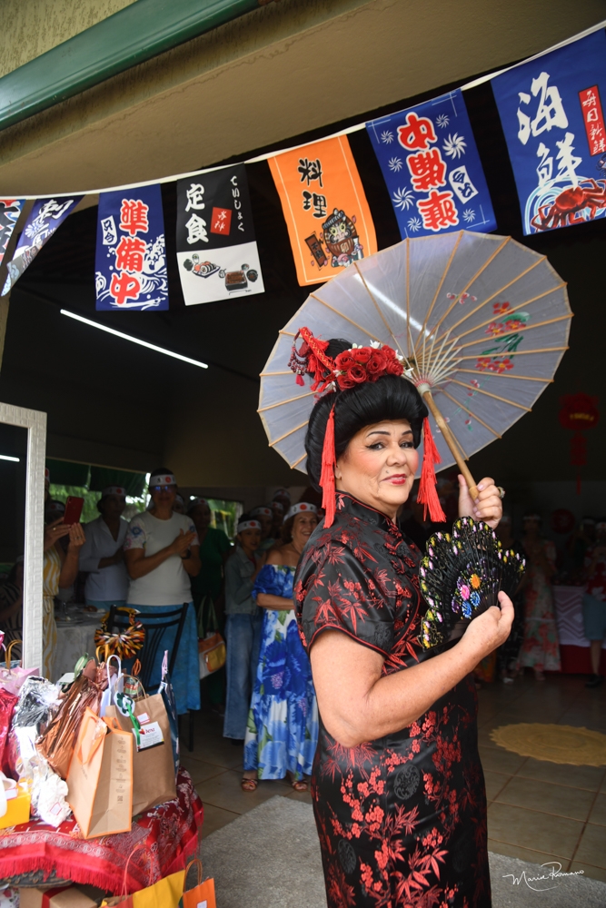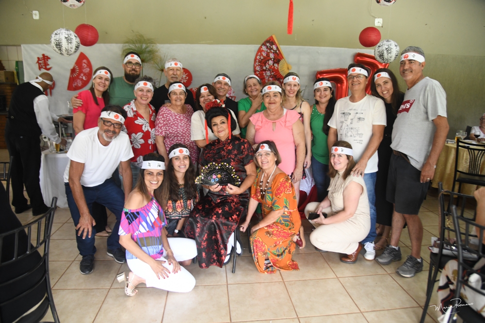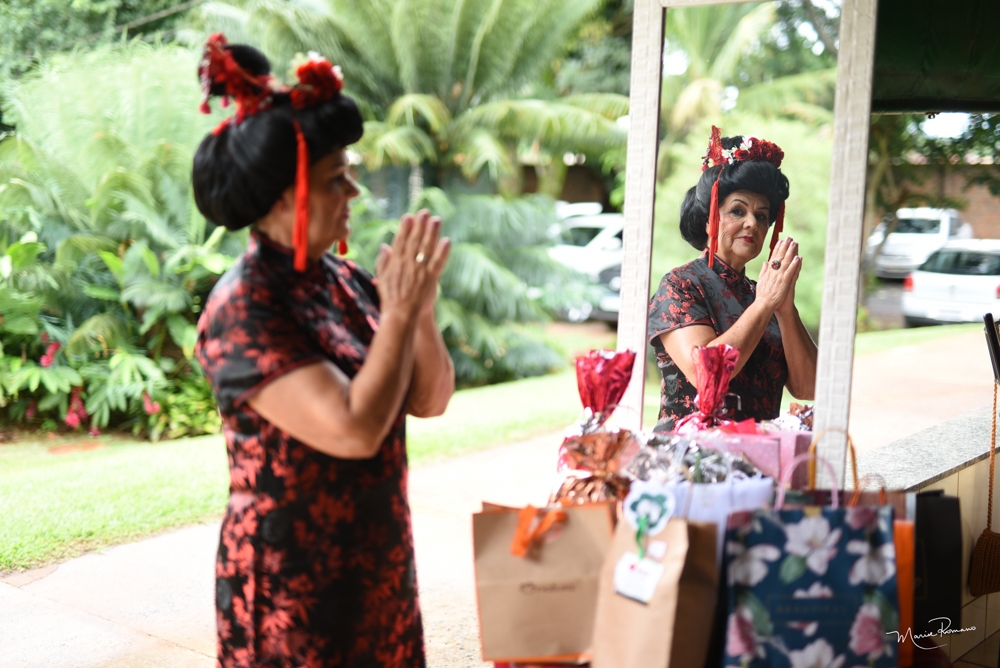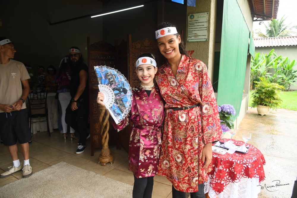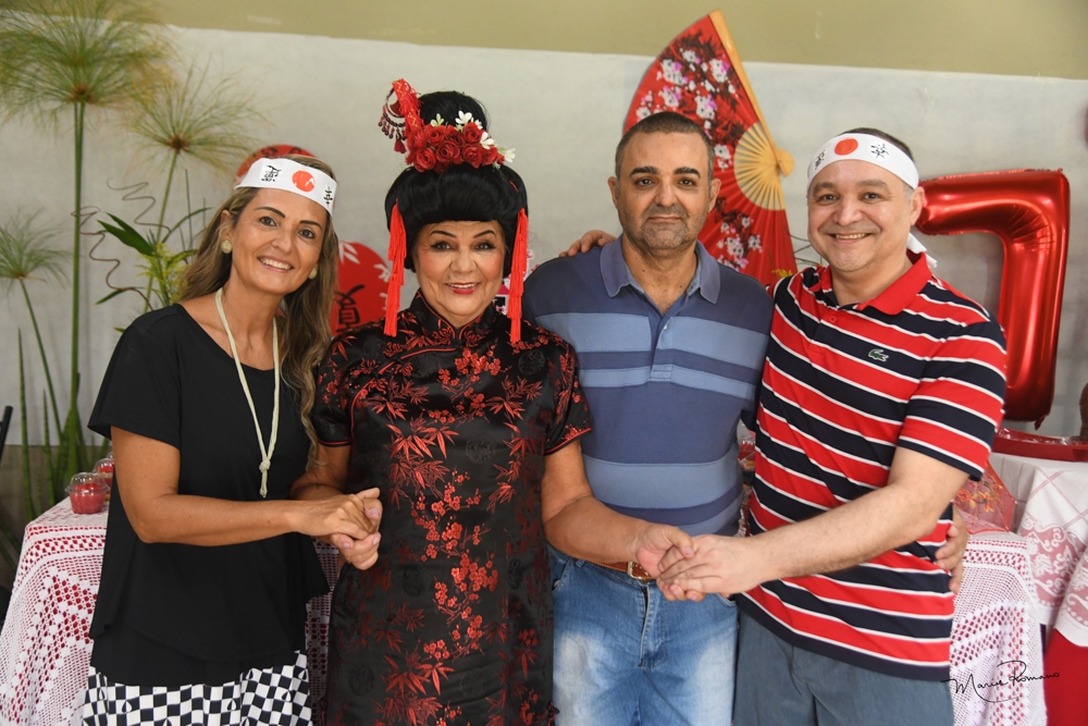 O tema da festa de Carmen Lucia Lima foi o Japão. Teve dancinha, incenso, música, faixas para os convidados e muita alegria
