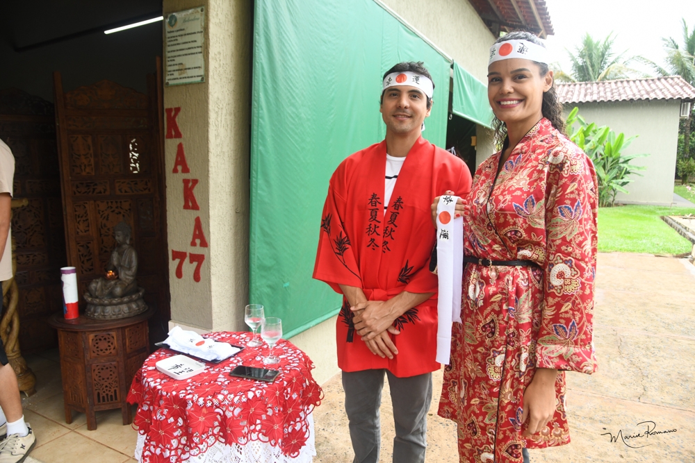 Os convidados de Carmen Lima usaram faixas com o símbolo japonês na testa