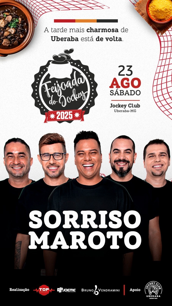 Sorriso Maroto confirmado na Feijoada do Jockey dia 23 de agosto no Jockey Club Uberaba.