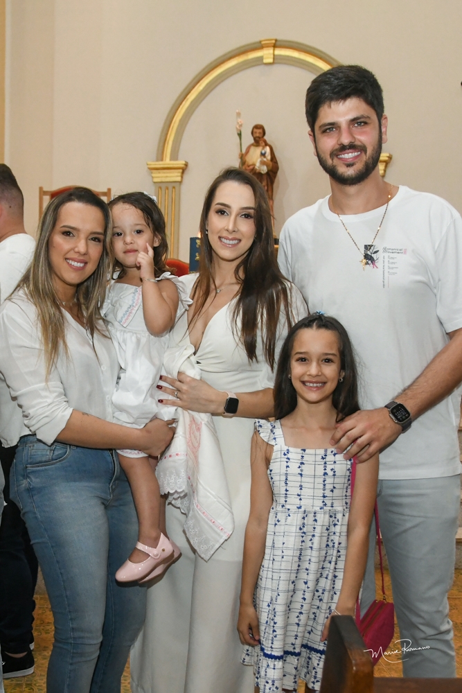 Thayná Galoro e Caio Romano são os padrinhos de Lívia e Júlia Galoro Mendonça Furlan, filhas de Eduarda Galoro.