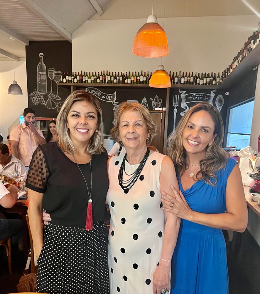 Electa Junqueira curtiu a alegria da recepção do seu aniversário ao lado das filhas Renata e Esmeralda