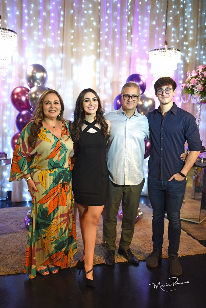 Georgia e Marx Xavier, os pais da debutante Florença, se sentiram muito felizes ao ver a felicidade da filha com a reunião de amigos na última sexta-feira