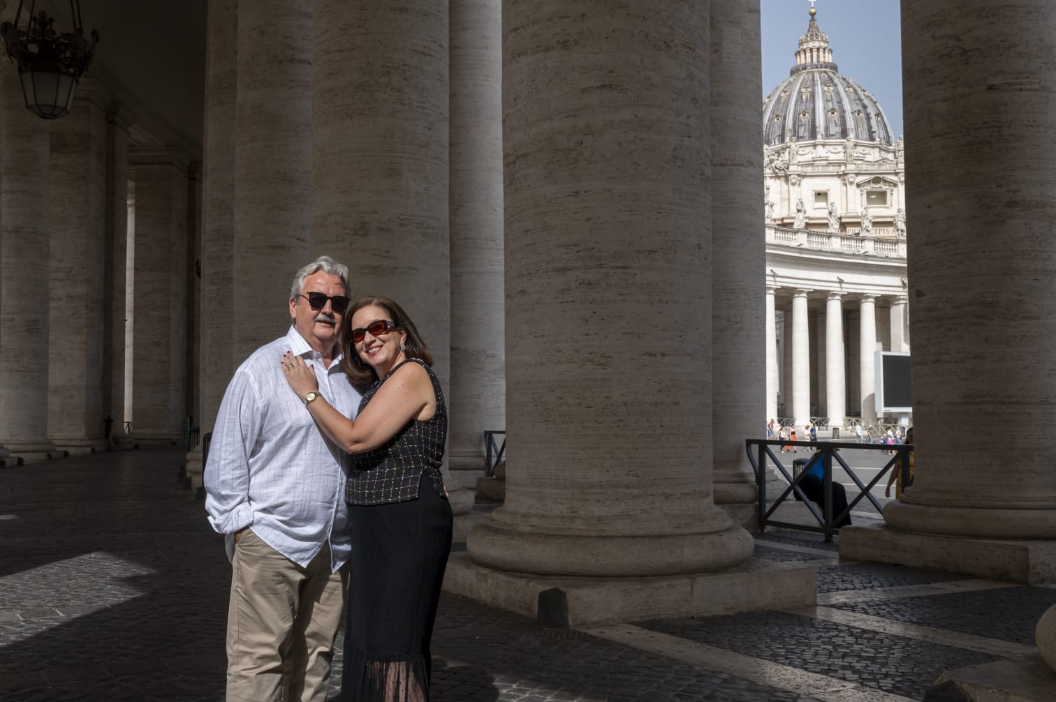 Regina e Fernando Valente acabaram de chegar de incrível viagem pela Europa. Nesta foto, estavam no Vaticano, onde fizeram orações pela família.