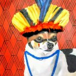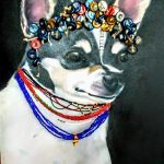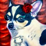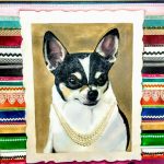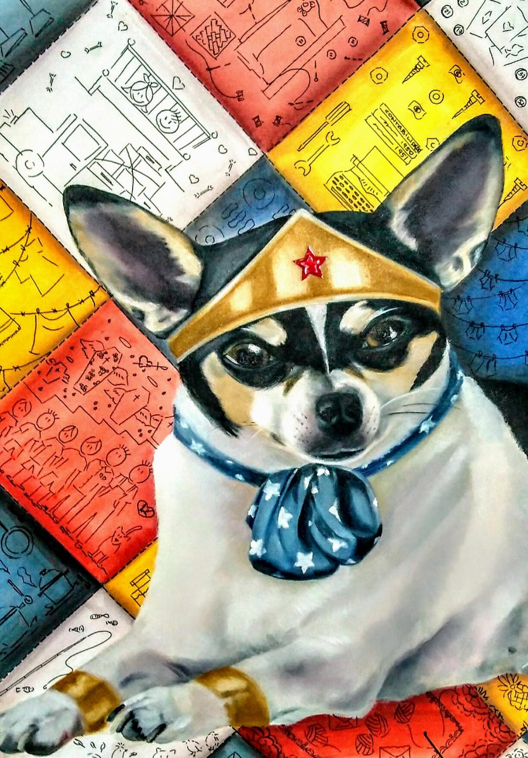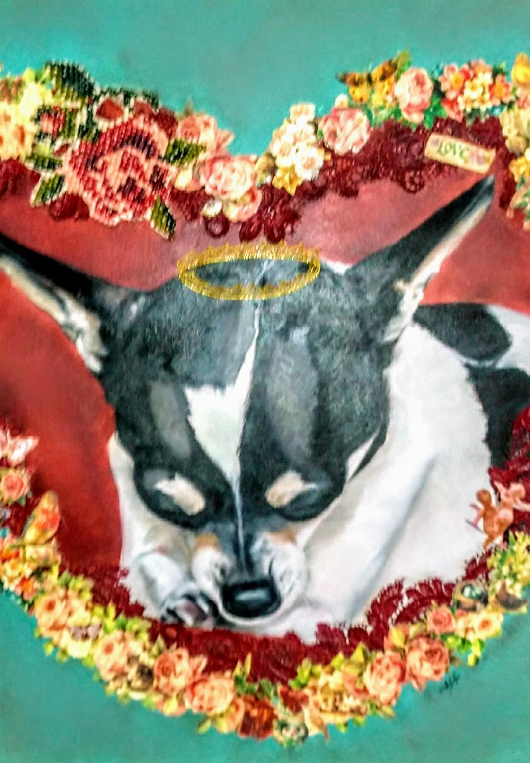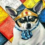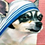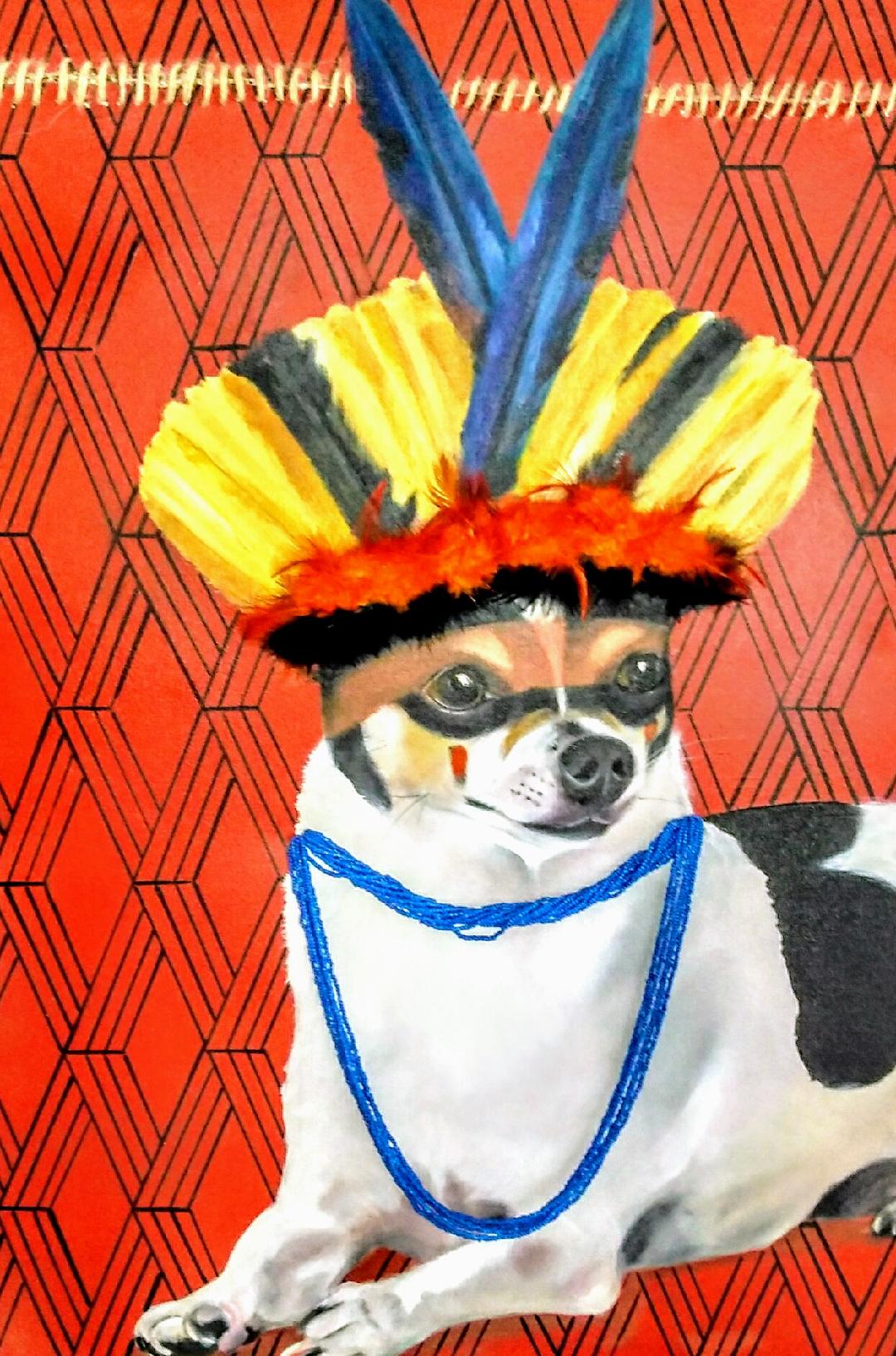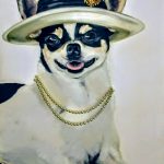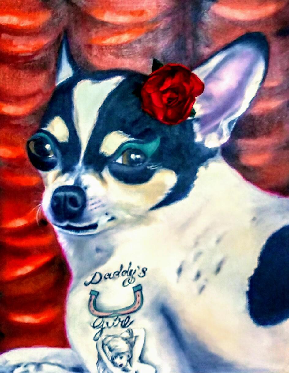 A inspiração, veio da cadelinha Chihuahua Chanel que foi imortalizada nas telas. Nos chama a atenção pela expressão do olhar ao fazer as homenagens.