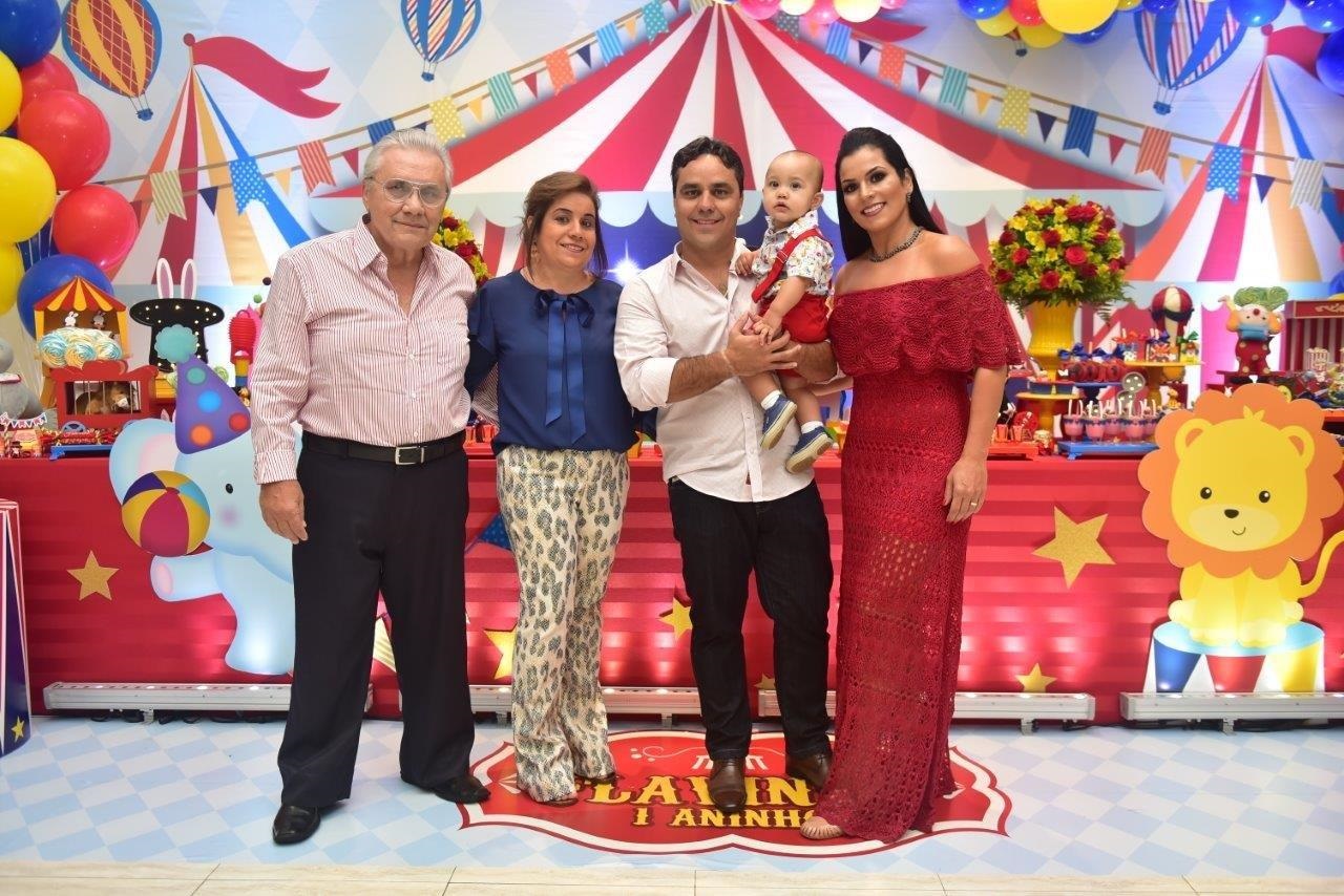 Flavinho curtiu o colo da avó Irani Maciel e do tio Fernando Maciel, ladeados por Ana Carla e Flavio.
