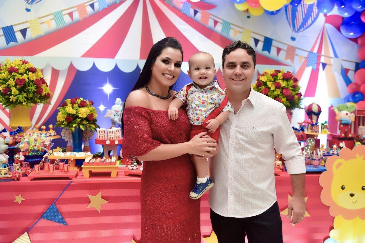 Os padrinhos de batismo Neto e Luciana, com seu filho Guilherme, foram prestigiar o aniversário de Flavinho.