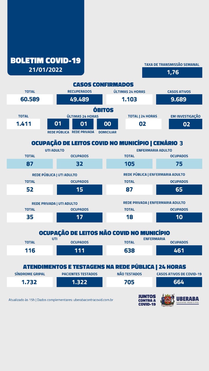 Além dos 32 leitos de UTI adulto ocupados, temos 02 casos suspeitos na UTI Neo do Hospital de Clínicas da UFTM, 01 caso confirmado e 01 suspeito no Hospital São Domingos.