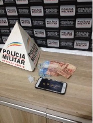 No dia 15 de outubro de 2017, por volta da 01 hora, durante Operação de Prevenção Ativa em Zona Rural, a Polícia Militar deparou com algumas motocicletas estacionadas em uma estrada vicinal que dá acesso a vários ranchos da região do Tamanduá. De imediato foi realizada a abordagem, momento em que o autor M.A.V, ao visualizar a viatura dispensou 02 invólucros de cor azul no meio do pasto. Após buscas no local, estes foram localizados sendo que em um continham 10 pedras de CRACK e no outro 03 papelotes de cocaína. Durante busca pessoal no autor M.A.V ainda foram localizadas mais 02 buchas de maconha. Segundo o autor, ele estava se deslocando juntamente com um amigo até uma chácara, onde estaria ocorrendo uma festa, local onde provavelmente venderia tais substâncias entorpecentes para os convidados da festa. Diante ao exposto o autor foi preso e conduzido até a Delegacia de Polícia Civil para demais providências.