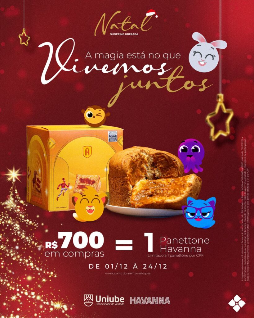 A ação reforça o apelo afetivo da data e estimula o fluxo de consumidores em busca de presentes e experiências de fim de ano. O regulamento completo e outras informações estão disponíveis, como as lojas participantes, no site www.shoppinguberaba.com.br. A promoção tem como patrocinadores a Universidade de Uberaba (Uniube) e Havanna.